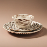 Meet the Wyatt Side Plate, a beautiful organic addition to your dining ensemble. With its hammered finish in an off-white and brown colour palette, this ceramic plate brings an artisanal touch and inviting warmth to your table setting. Designed for versatility, it effortlessly transitions from serving appetisers to desserts, infusing each dish with its raw beauty and nostalgic appeal. Crafted with care, it embodies a perfect balance of functionality and aesthetic, making every meal a delightful experience. Complete your tablescape by mixing and matching it with other dinnerware from our new ceramic collection, adding organic detail and nostalgic form to your dining experience.