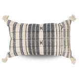 The Colombo Collection boasts beautifully intricate embroidered patterns in a blend of marine blue, hale navy, off-white, olive and black. The Colombo Fontaine Cushion Cover comes on a marine blue base with a detailed linear pattern in hale navy and off-white, complete with matching tassels.
