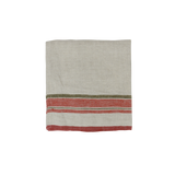 Style Description:The Red Selvedge Stripe Linen Napkin is ideal for festive gatherings yet versatile enough for everyday use. Delicate navy stripes paired with bold green accents create a modern farmhouse charm. Pair it with the matching tablecloth, tea towel, and table runner for a cohesive look.