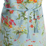 The Somerset Apron is made from durable cotton canvas featuring a colourful floral design on a French blue base, further boasting a front pocket and a single pull-through tie.