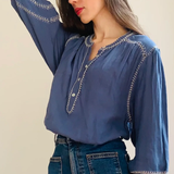 Amelie Feather Stitch Blouse / Blue