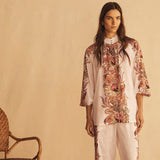 BEL FIORE TRELLIS is a celebration of nature’s beauty. Exotic florals unfold within a delicate lattice panel. Warm pinks, soft lilacs, and muted natural tones bloom against a serene coconut base, balancing structure with graceful beauty.