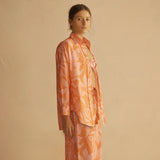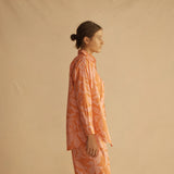 Brasile captures the essence of South American beach holidays with a bold tangerine base and soft pink oversized foliage. Inspired by the vivid energy of 70s coastal escapes and dramatic sunsets, this vibrant, eye-catching print brings vintage flair and radiant warmth.