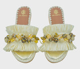 Pearls are a girl's best friend. An eclectic combination of light catching mixed pearl embellishments, cream color raffia and fringing sets these Dafina sandals apart from your typical summer flats. With its hand embroidered leather sole this pair will prove a strong talking point for every vacation outfit. So wear them with pride and enjoy!