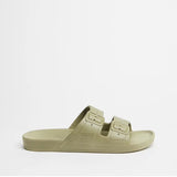 Freedom Moses are the 365 day slides made from a sustainable, eco-friendly new breed of plastic. These slides are not just cool looking, theyre waterproof, washable, animal friendly, smell of milk & honey & are so comfortable youll wear them in winter with socks