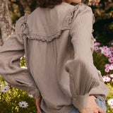 Introducing our Isabella blouse in garment-dyed, super soft cotton gauze. Great for cooler weather & goes with everything!