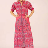 The Lola Australia JULY MAXI Cotton Dress blends vintage elegance with contemporary style. Crafted with care, it features delicate buttons running from the neckline to the hem, lending a refined and classic look. These buttons are both practical and decorative, enhancing the dress’s timeless charm. Style it freely or cinch the waist with the included braided belt for added shape.