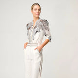 Elevate your wardrobe with the Leila Silk Cotton Print Curved Collar Shirt in Ivory Casablanca — a timeless blend of soft femininity and modern polish. Crafted from a luxurious silk cotton blend, this lightweight shirt drapes beautifully against the body, offering both comfort and understated sophistication.