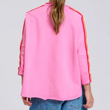 The RAW is everything you want, soft, comfy with no cuffs or waistbands to restrict you and now in a FABULOUS navy combo. Featuring our RAW edge, this shape is easy and flattering, featuring a gentle curved high-low hem, and effortless style, every day.