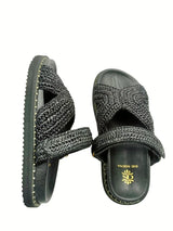 Easy breezy summer styling is your mood for the warmer months. These woven raffia fussbett sandals in black are the comfy version of our bestseller "ZINIA". Make this pair your everyday go-to, slip them on and go enjoy some sunshine