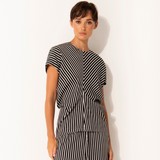 Elevate your wardrobe with this Luxe Cupro top, featuring a bold stripe and a refined round neck. The cap sleeves and zip-back detail add a modern edge, while the shaped silhouette gently contours to the hips for a flattering fit. Crafted from stretch cupro, it offers both comfort and sophistication, perfect for effortless day-to-night styling.