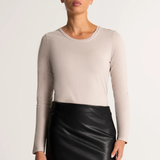Soft to touch, cool to wear. The new basic T, with curved hem and a relaxed fit. Length is over the hips.