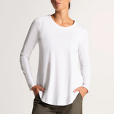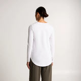 Soft to touch, cool to wear. The new basic T, with curved hem and a relaxed fit. Length is over the hips.