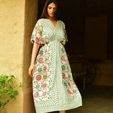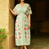 We love all things Suzani fabric and this season we've brought you a detailed pastel block print in the most perfect Beach caftan shape, v neckline and maxi length and a tie waist to cinch and flatter