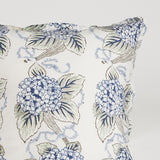 The Springtime Euro Pillowcase features a gorgeous hydrangea print in muted blues and greens on a white linen base. Match back with the Springtime Quilt and Duvet Set.