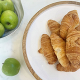 A cake stand made from Mango Wood with a white enamel coatingl.