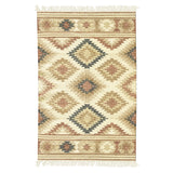 The Atlas rug comes beautifully detailed in a diamond pattern with a mix of warm natural hues and a knotted fringe.