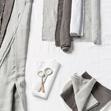 The 100% stonewashed linen Bay collection is finished with a raw edge.