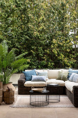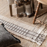 The Biscayne Rug features beautiful natural tones and is bordered with track patterns on each side.