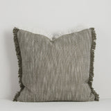 • Construction: Handwoven chambray-style front and back with warp and weft fringe edge.