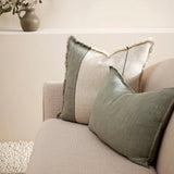 Country charm is given a contemporary twist, with the raw fringing and sage colourway of our Frankton cushion. Crafted from thick, textural linen, the asymmetric design creates a modern take on classic style.