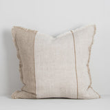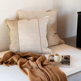 Country charm is given a contemporary twist, with the raw fringing and natural sand colourway of our Frankton cushion. Crafted from thick, textural linen, the asymmetric design creates a modern take on classic style.