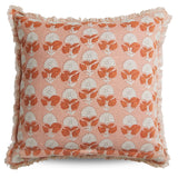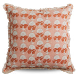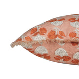 The Freshfields Sissi Cushion boasts a large floral print with an eye-catching terracotta highlight on a rose linen base, matching fringe and matching reverse.