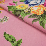 The Kensington Collection features a vibrant floral hand-block printed design in colourful tones on a carnation pink base.