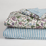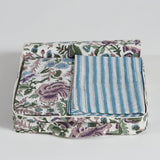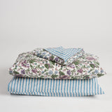 The Morningside Duvet Set comes in a matching fabric bag, perfect for storage. Featuring a striking, all-over floral print in blues, greens and lilacs on a white base, with a stunning teal blue and white stripe pattern on the reverse. Available in Queen and King, this set comes with a duvet cover and four matching pillowcases ~ two matching one side of the cover and two to match the reverse.