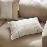 Introduce a natural, inviting aesthetic with the soft fringing and lumbar shape of the Oliver cushion. Handcrafted from 100% linen, the warm sand tones and asymmetric design celebrate the natural texture of raw linen fibres.