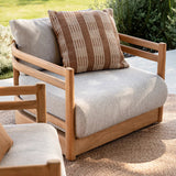 Featuring a two-tone ribbed design, bringing your interior style outdoors is explored with the artisan style of the Orion cushion. Crafted from warm tobacco and cumin tones, the woven pattern creates a crafted ambience, bringing a calm, nurturing quality to exterior spaces. Pair with tobacco tones to create a warm, desert-inspired look. This cushion is crafted using soft, recycled PET yarn, a resilient fibre made from recycled plastic bottles. 29 plastic bottles were saved from landfill to create this piece.