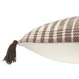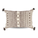 The Palmetto Raver Cushion comes in a beautiful two-tone of off-white and mushroom with a tribal-inspired, symmetrical pattern on the front.
