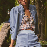 Finished with delicate fringe edging and tailored with a structured silhouette, the Aurora Jacket is ideal for dressing up denim or elevating a matching set. Whether worn open or zipped, floral or solid, it’s the piece that will take you seamlessly from brunch to boardwalk.