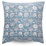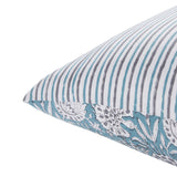 The Cambria Fiorella Sham Cover features an all-over hand-block print floral design in blue and grey on one side, with an eye-catching striped design on the reverse with matching piping.