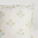 The Flower Market Euro Pillowcase features a beautiful sky blue and mustard floral print on a white linen base. Match back with the Flower Market Quilt and Duvet Set.