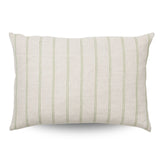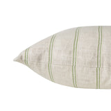 The Heath Horizon Cushion features a beautiful apple green striped pattern with intricate stitched detailing on a natural linen base.