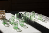 The Lune Etch Votive is a classic style votive in a Green shade featuring Fleur-de-lys etched glass. Mix and match with other votive styles in the Lune Collection.