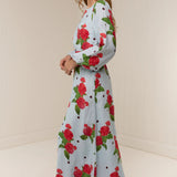 The Melrose Dress, printed in our exclusive Sky Garden print, is crafted from a premium Linen. Fitted through the bust and waist and flowing into an A-Line Skirt, the Melrose Dress is designed to softly skim the body for a flattering fit. Featuring a rounded high neckline, blouson sleeves, a matching buckle belt and an ankle-length hem