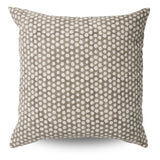 The Nala Kisumi Cushion comes with a two-toned dot pattern and a plain reverse in natural.