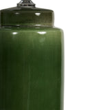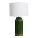 The Penton Lamp has a strikingly classic silhouette in a deep green tone, complemented with an off-white drum shade.