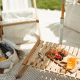 The cutest and most complete compact picnic table around! Made using the same teakwood as our Beach Chairs, this adorable little table includes folding legs, a carry strap, 4 wine glass holders and a center Umbrella hole.
