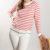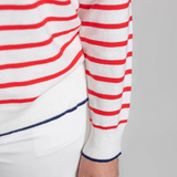 Stripe Crew Neck Jumper / White + Red