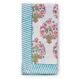 The Tableau Umbria Napkin features a summer-inspired design of colourful florals on a white cotton base, finished with a vibrant blue striped border.